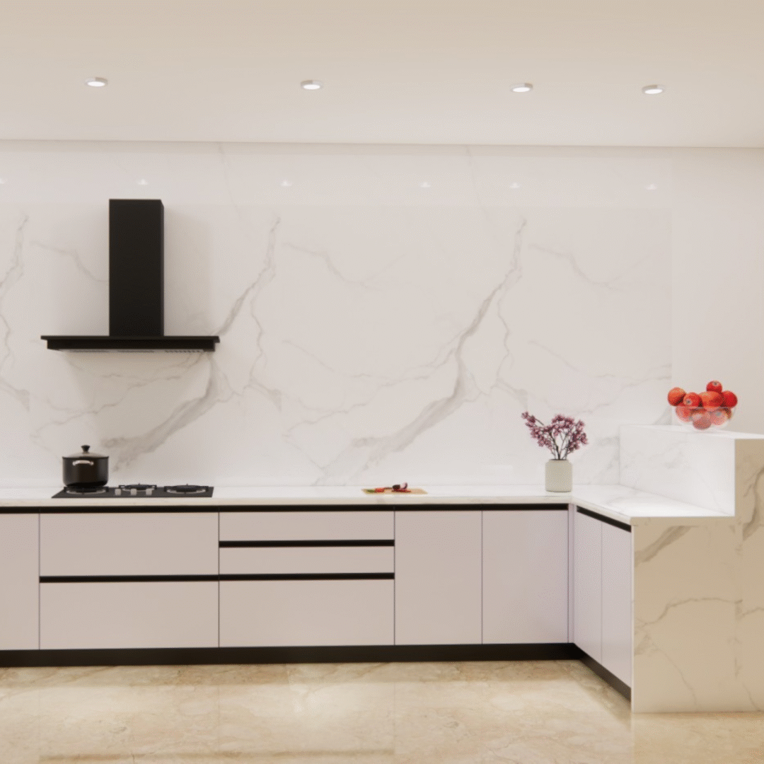 The integrated breakfast counter creates a casual dining or workspace, making the kitchen both social and efficient. Stainless steel construction enhances hygiene, durability, and ease of maintenance — perfect for everyday cooking. With clean lines, minimalist finishes, and premium materials, this kitchen brings a contemporary edge to any home.