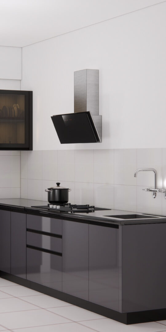 With thoughtful cabinet placement and vertical storage, this kitchen design ensures better organisation, clutter-free countertops, and convenient access to everyday kitchen items.